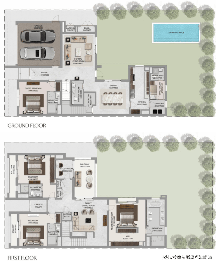 主体结构:G+1层(私人泳池和花园)