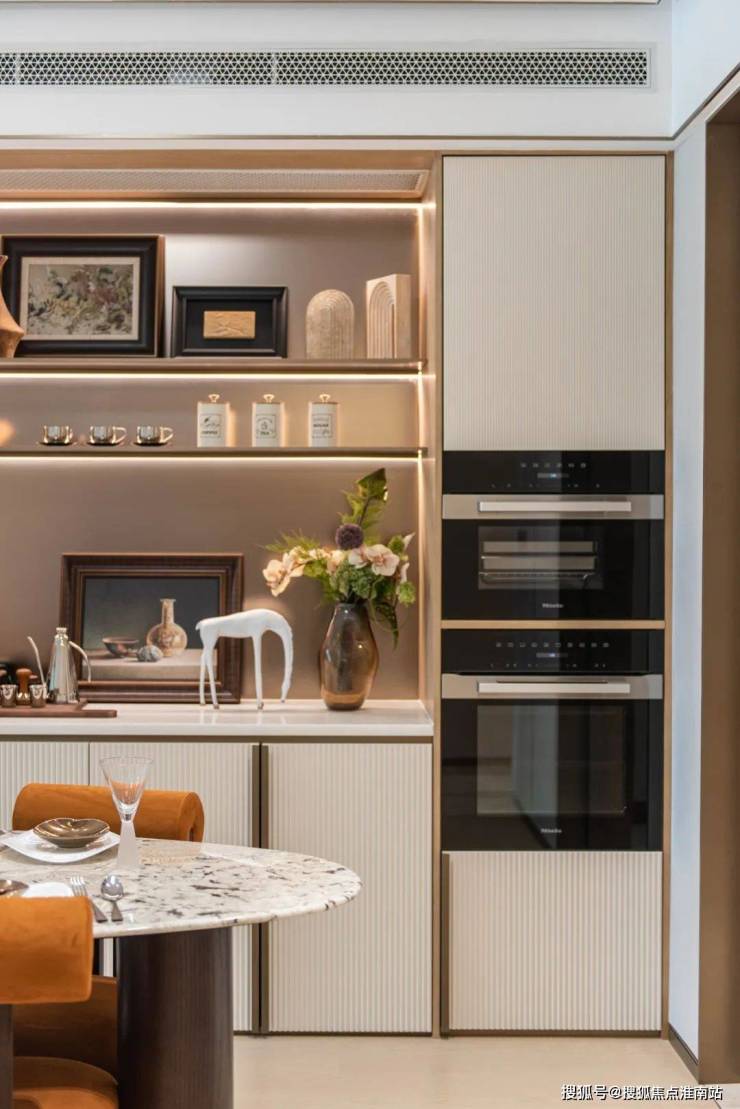 厨房电器配备5件套,包括抽油烟机、燃气灶、洗碗机、蒸箱、烤箱,镶嵌品牌橱柜,采用全球著名品牌水槽、厨房台面,厨房内的中央空调连带炎热夏季的烹饪难题也一并解决,这样的人性化设计,又进一步提升了生活的质量。