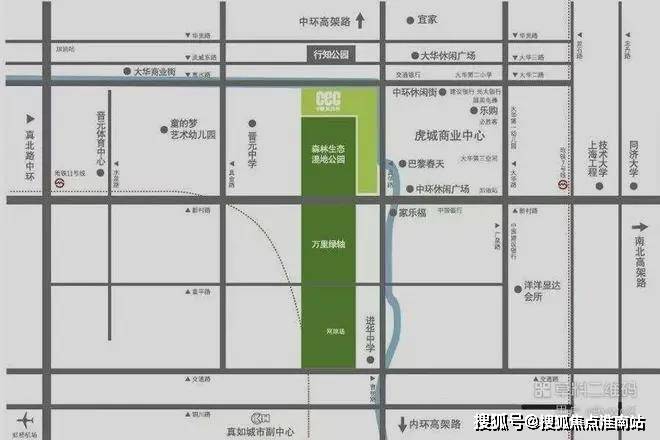 毗邻上海4大城市副中心之一的真如副中心,紧临内环、中环,到达虹桥枢纽、上海西客站都十分方便,城市主干四通八达,双轨交、多公交环伺,轻松畅达市中心各核心商圈。项目北部与东部分别被横港河、龙珍港包围,形成天然的半岛生态居住区,两条天然河流和森林海成就了上海此去无他、最宜居的低碳生活区。