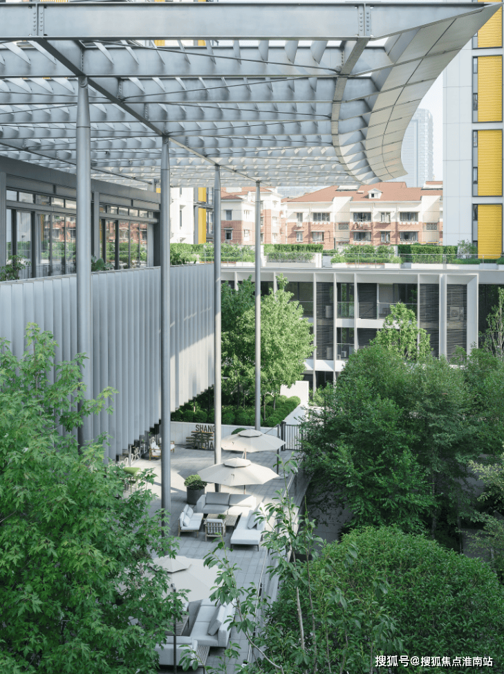 从一层大堂到 约9.45m标高的高线公园、 屋顶花园等一系列空间融合,创造了多维立体的社交生活场景。