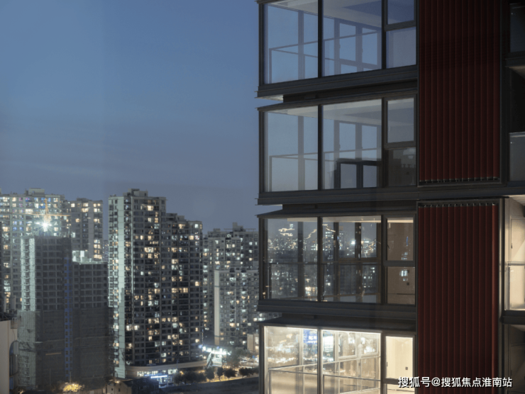 极具辨识度的 红黄渐变外立面、 270°转角无柱落地窗完美呈现,哪怕在春日不够耀眼的光线下,整个建筑仍折射出极有光泽的细节变幻。