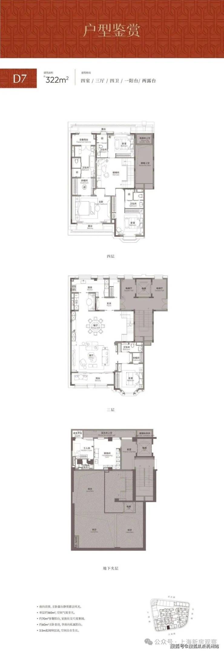 合院别墅:建面约502–907㎡(地上四层、地下两层)