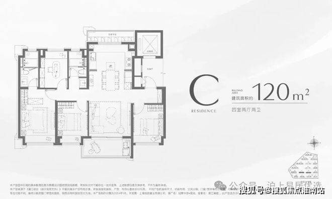这个户型做到了同面积段罕见的四开间朝南+大宽厅设计,动静分离活动区域起居较为分开互不打扰。