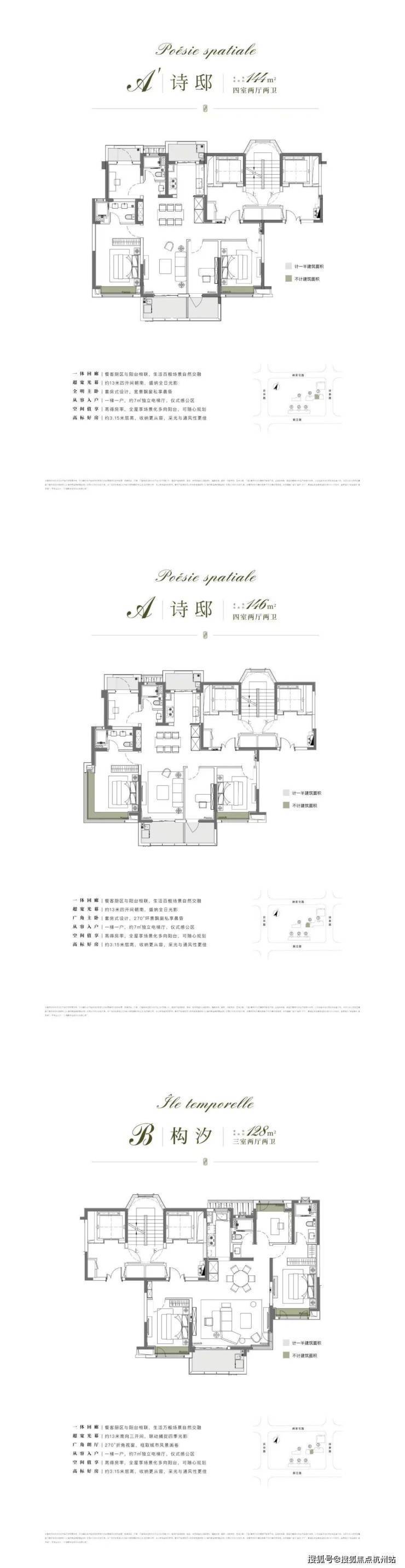 户型:建面约 106-146㎡三至四房(主力 116㎡三房两厅两卫、132㎡四房两厅两卫、146㎡四房两厅三卫明星户型);一梯一户独立电梯厅设计,3.15 米层高+ 南北双阳台 / 四阳台布局,四开间朝南,270 度转角飘窗;全精装交付,标配威能地暖、大金中央空调、霍尼韦尔新风系统,整屋墙布,科勒卫浴、西门子厨电等一线品牌,得房率约78%