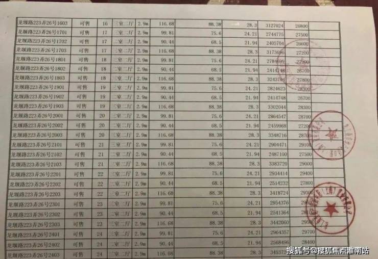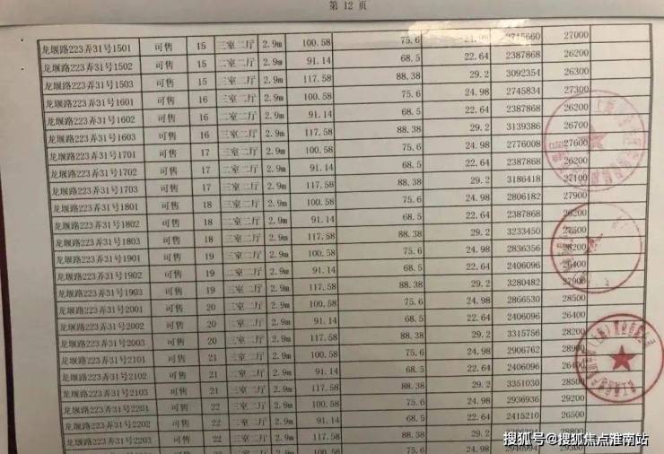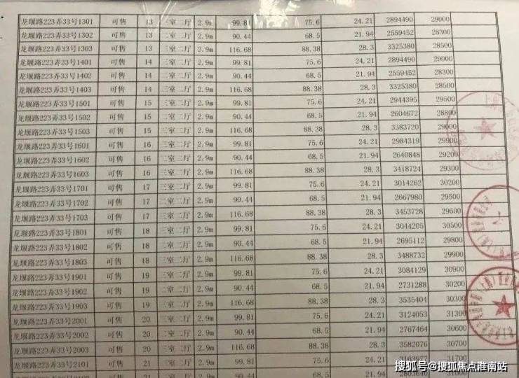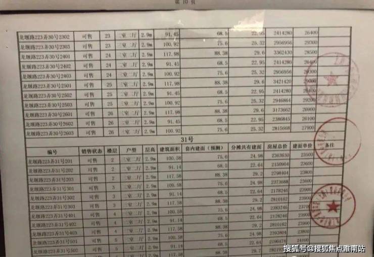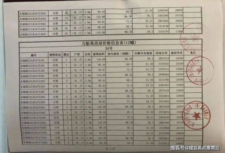 项目一房一价表