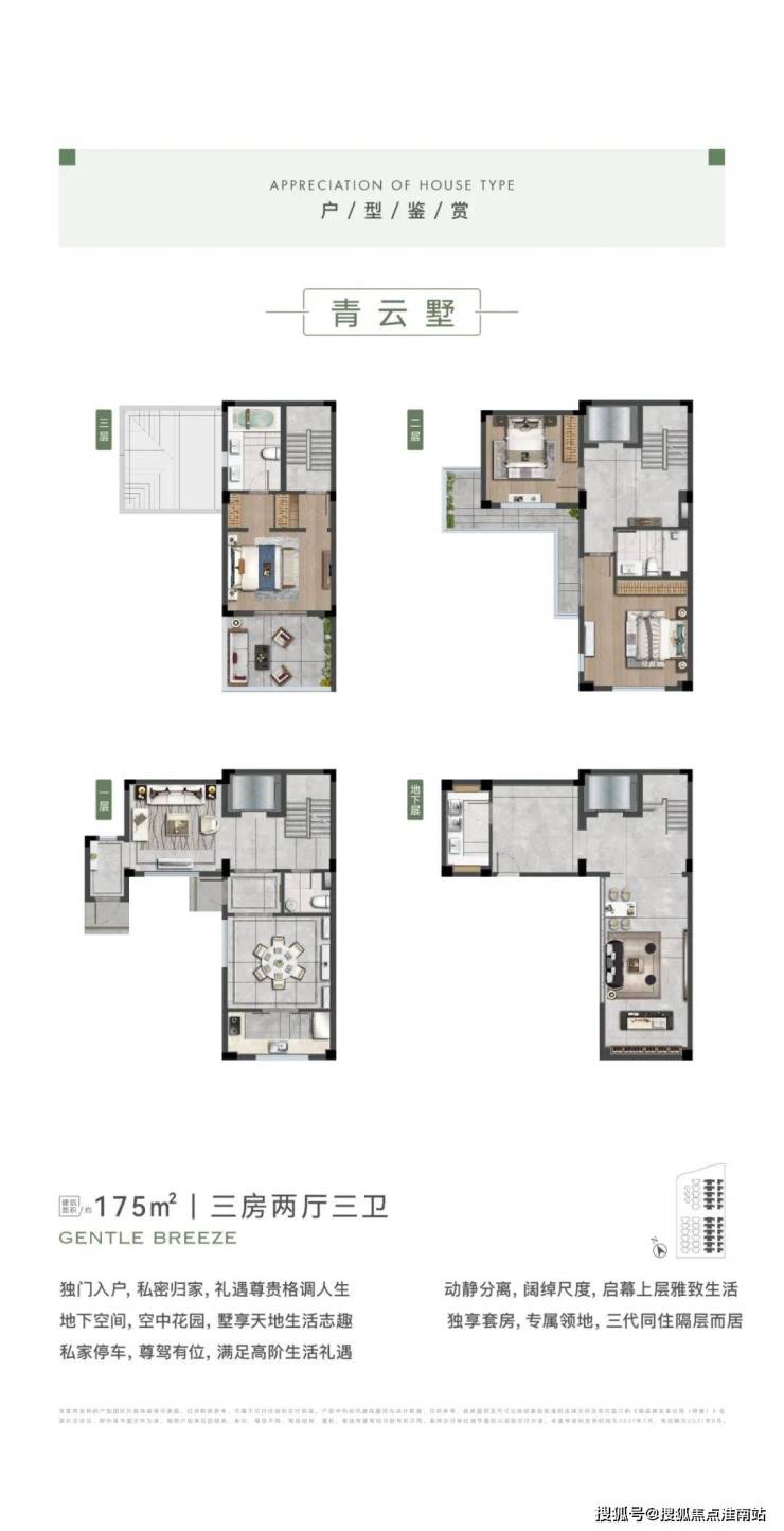 在空间布局上, 上下四层结构,有天有地有庭前绿地,能很好安放一整个家庭的美好生活。