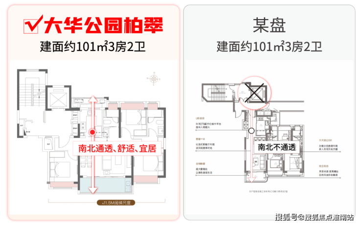 相比竞品户型的2房+1个功能房 ,其功能性天壤之别。