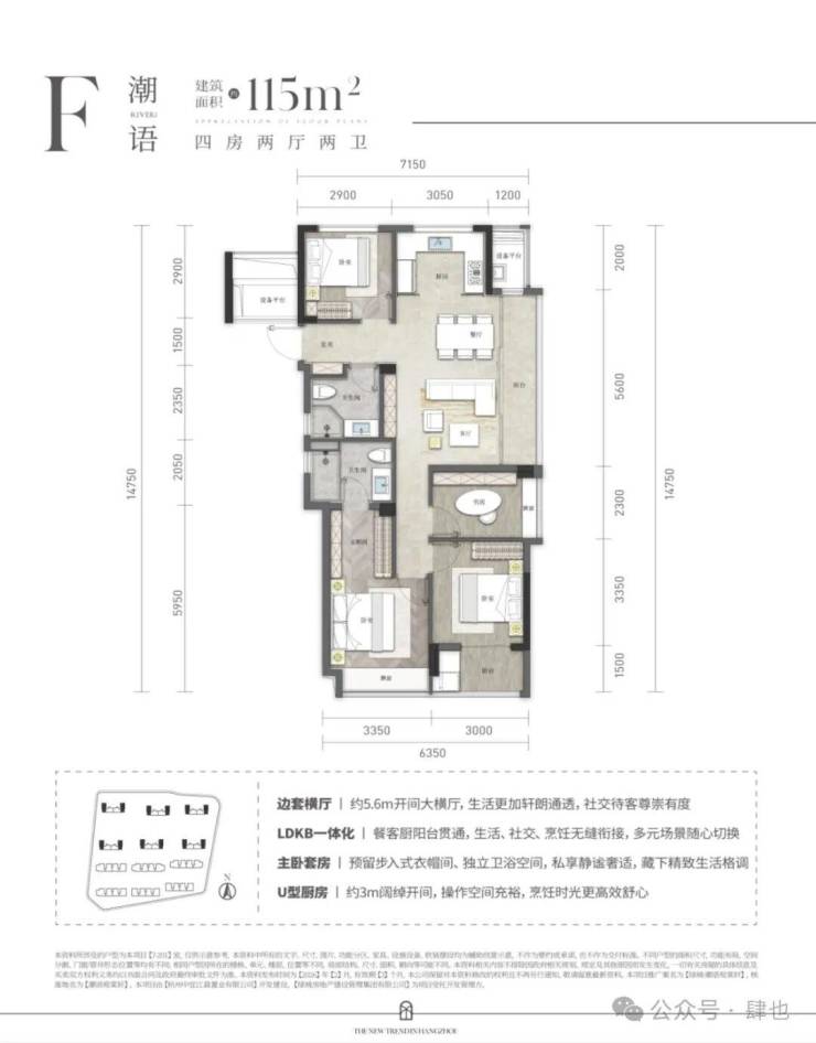 - 客厅约3.5米阔绰开间,主卧套房带独立卫浴、预留L型衣帽区,私密舒适。