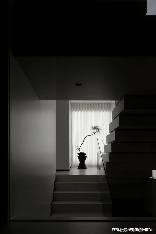 楼梯区完全被几何占据,自然光恰到好处的平衡,进一步呼应着空间的心境,衔接了生活和居所。
