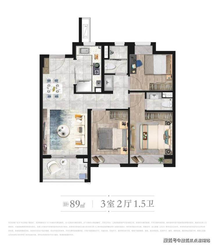 [ B户型 ] 建筑面积约89㎡ | 3房2厅1.5卫