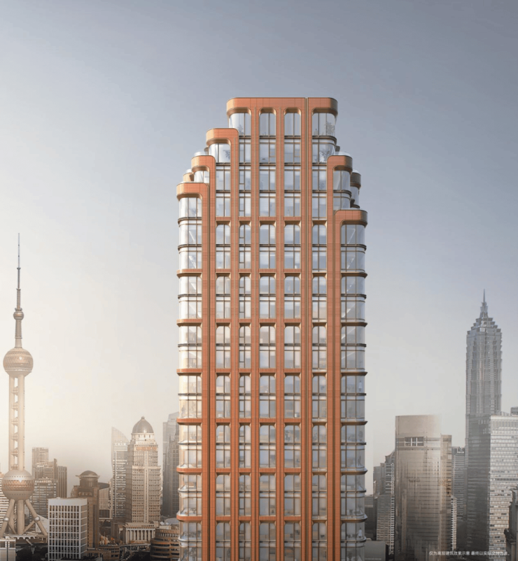 创新选用经过1200℃以上高温烧制锻造的陶板,呈现出上海海派文化标志性的砖红色,再配以铝合金线条勾勒出窗户和层叠式后退结构,同时大面积使用三玻两腔的落地系统窗、转角曲面玻璃作为标配。