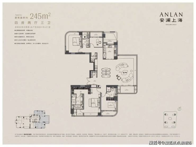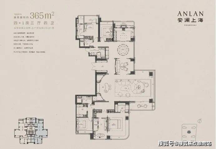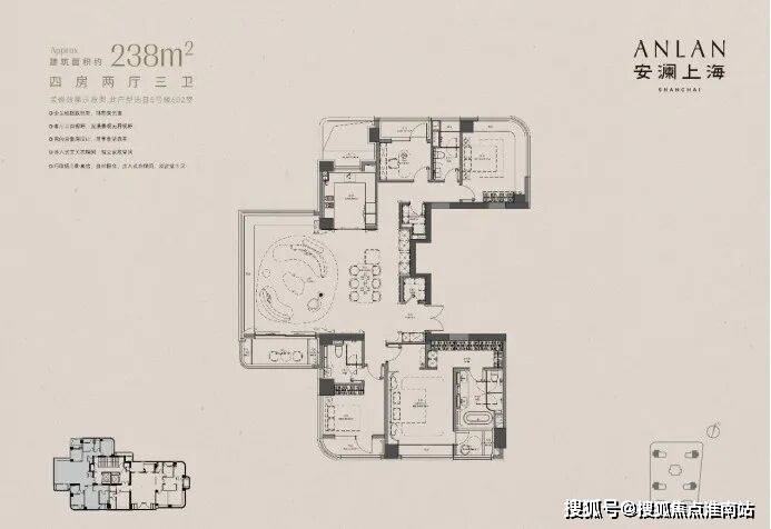上海徐汇安澜上海售楼处电话:4009966224【预约看房热线】安澜上海售楼处电话:400-9966-224【售楼处电话/地址】售楼处电话:400-996-6224【开发商认证】以下为建面约370㎡户型过程稿亮点: