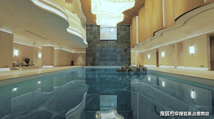 自然天光的引入,映射在整座镜面泳池之上,是整座城市上空的风景。高达约10米的跌水瀑布,带来了非常强烈的视觉冲击