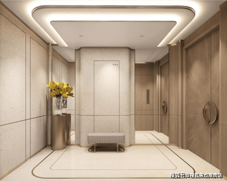 381户型标准层电梯厅效果图,仅供参考,最终交付标准请以合同约定为准