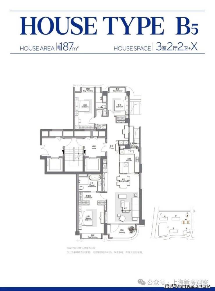 外立面方面,项目整体将打造为新海派建筑地标,设计有弧线阳台、45度玻璃、双层塔冠等,设计灵感来源于蔓楼兰;立面色调方面,将采用珐琅彩色调,具体或为珍珠蓝铝板+红色纹理+金色线条,具体材料及配色还在最终确认。