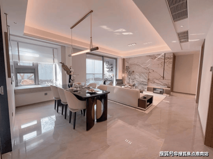 客餐厅阳台一体设计,客厅南连宽景阳台,餐厅南连飘窗,南北通透采光,将生活的奢度打开。