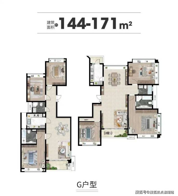 G户型:172(边套)18套 三房