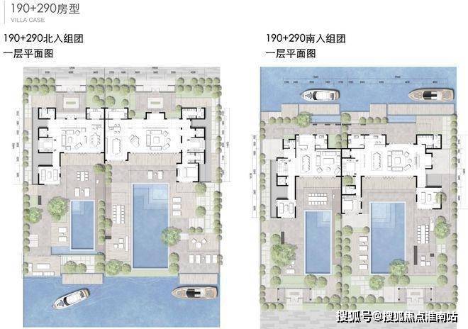 产品均为地上三层、地下一层,分为南、北入户,附赠花园70-120m²(特殊户型除外)户均带有水岸码头