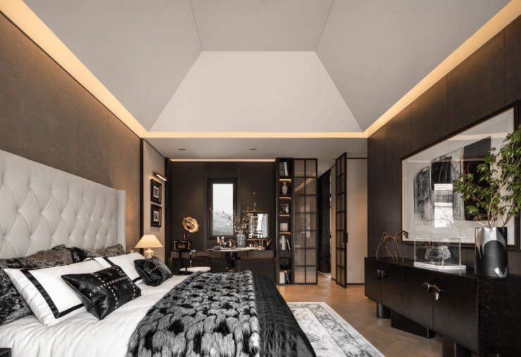主卧空间条件极佳,格局舒朗,奢阔的尺度足以建构丰盈的情境。
