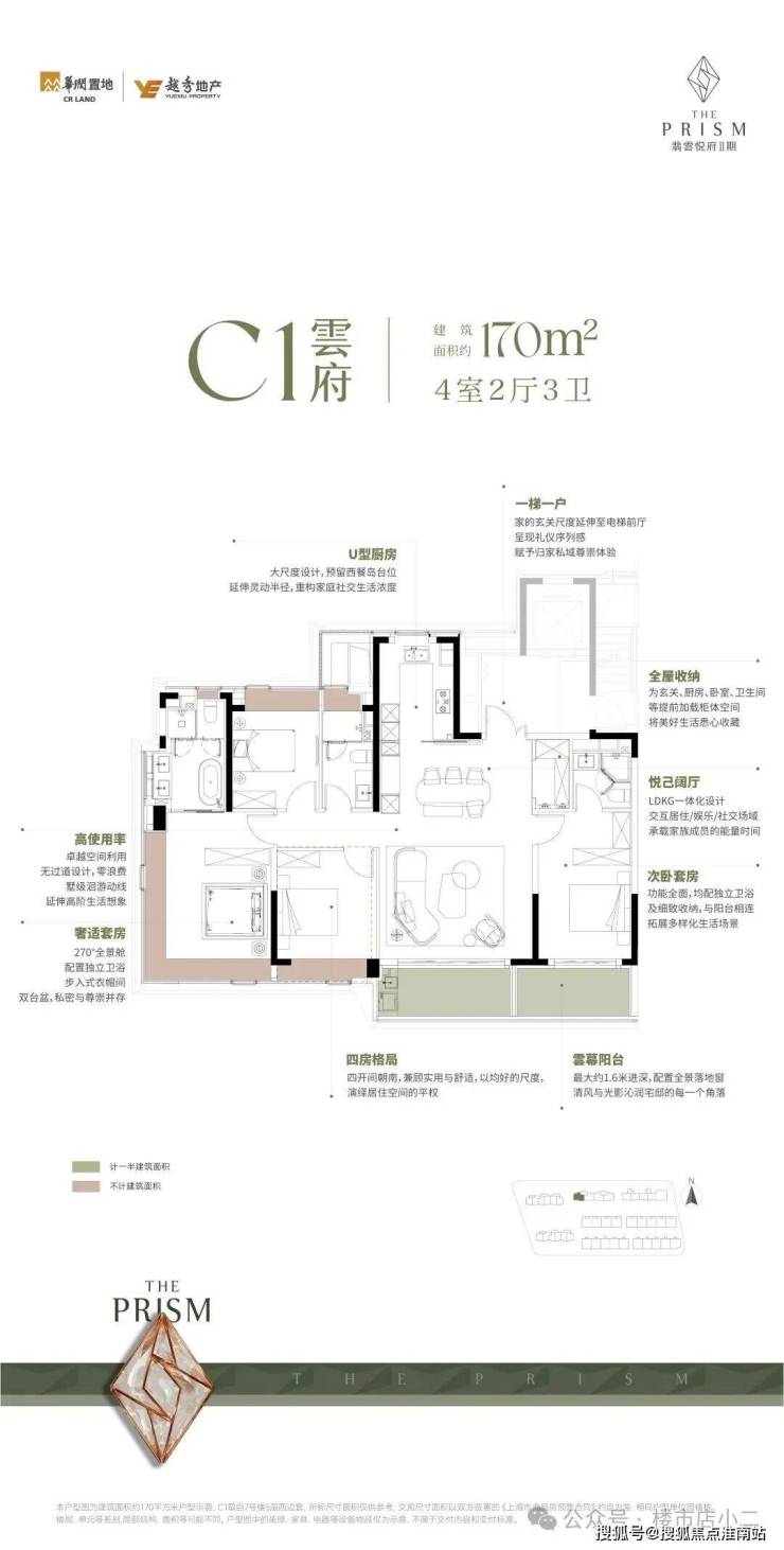 但翡雲悦府·悦墅的别墅产品建面约175-220㎡,对比同价位段约150-180㎡的大平层而言,是碾压级别的。
