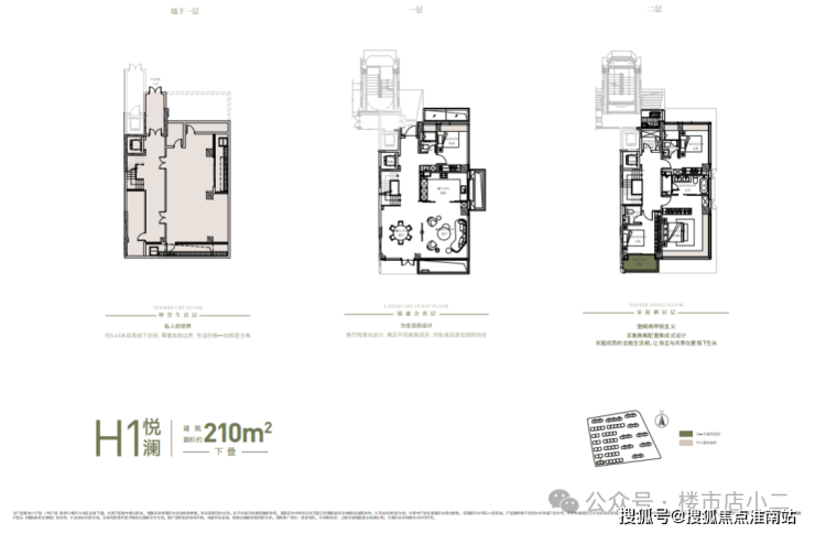建面约182㎡下叠:庭院+地下室(含夹层)+阳台的整体附赠空间约210㎡;