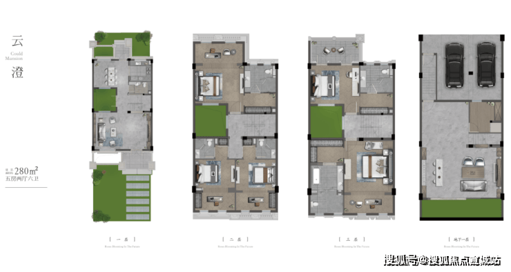 280㎡联排:5室2厅6卫,三面采光,总价约1100万/套