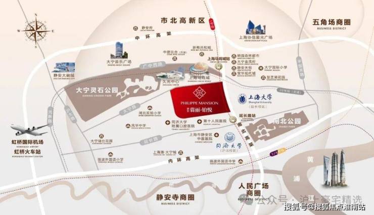 辐射商圈:人民广场商圈、静安寺商圈、徐家汇商圈、五角场商圈
