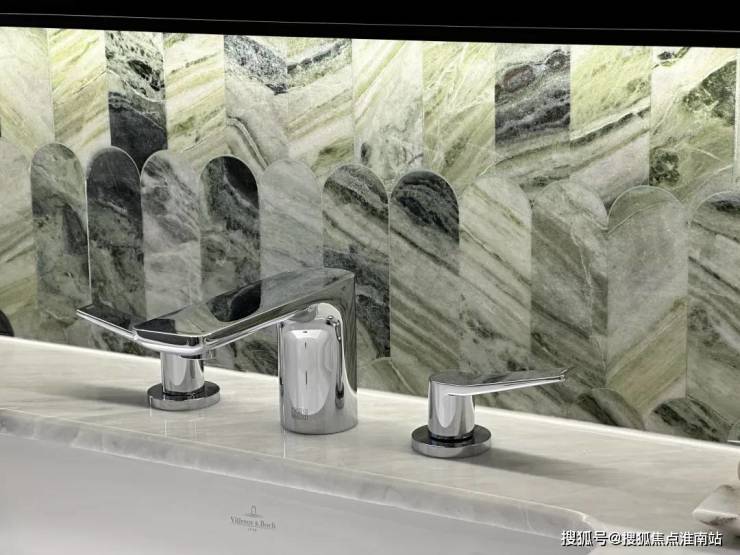 卫生间大量采用 奢石和石材,比如主卫柜体墙面就是香格里拉翡翠拼花,龙头是冷热分离式,成本更高。