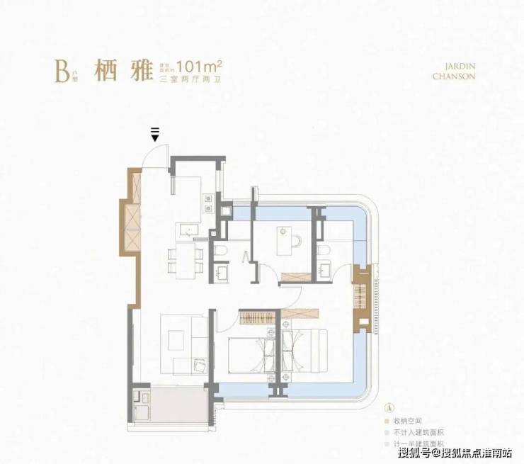 约107㎡三房:客厅面宽达4.7米,空间通透,得房率高;