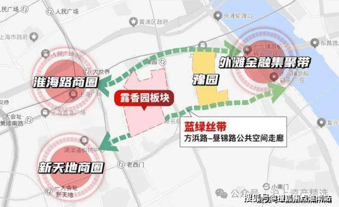 露香园至人民广场/淮海路/外滩/豫园等核心地标均在约1–2公里直线范围,真正位于“左右逢源”的内城核心地位——