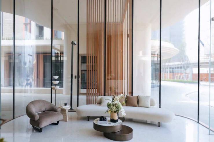 入户方面,相比2022年各大豪宅交付的毛坯大堂,天安1号的入户精装大堂尽显奢华,整个归家仪式感充满了艺术氛围。