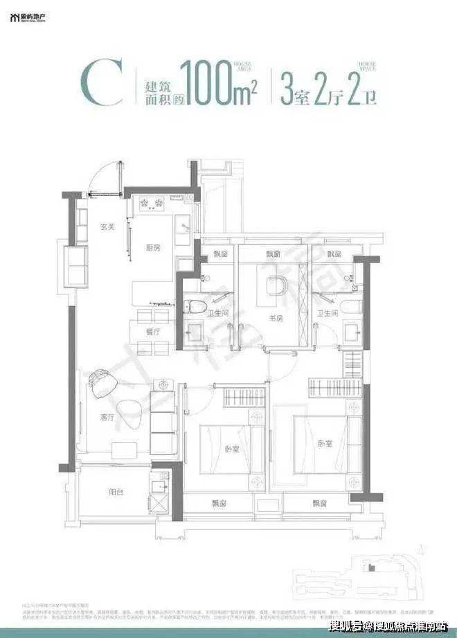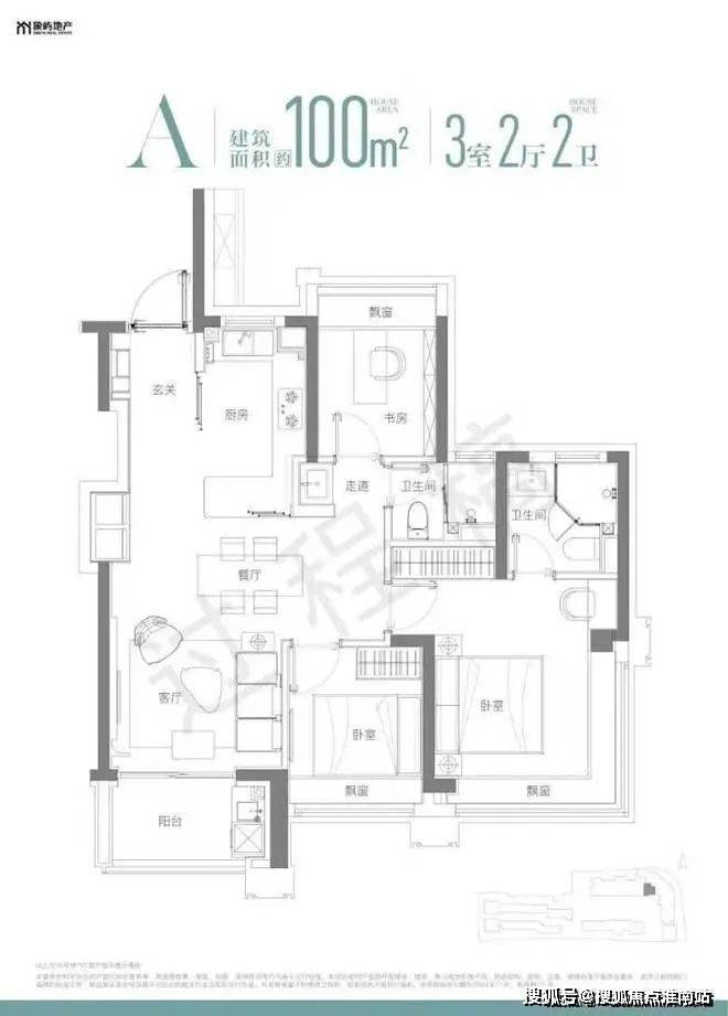 建面约100㎡高层3房共132套