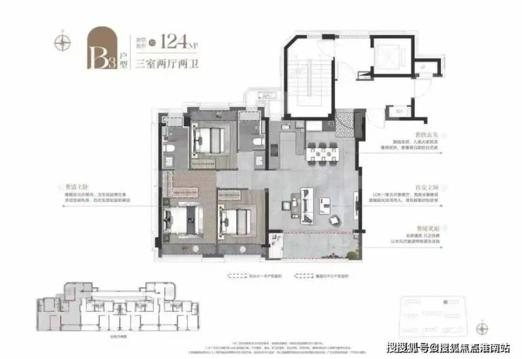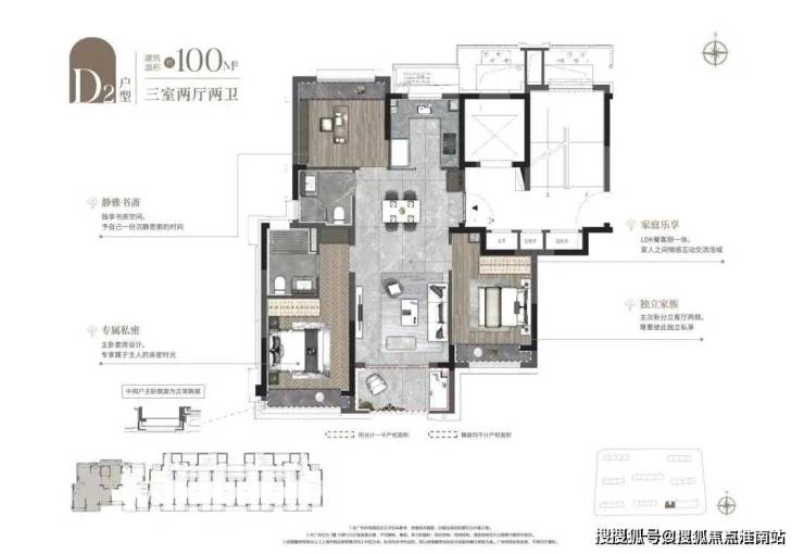 ②建面约103㎡3房户型: