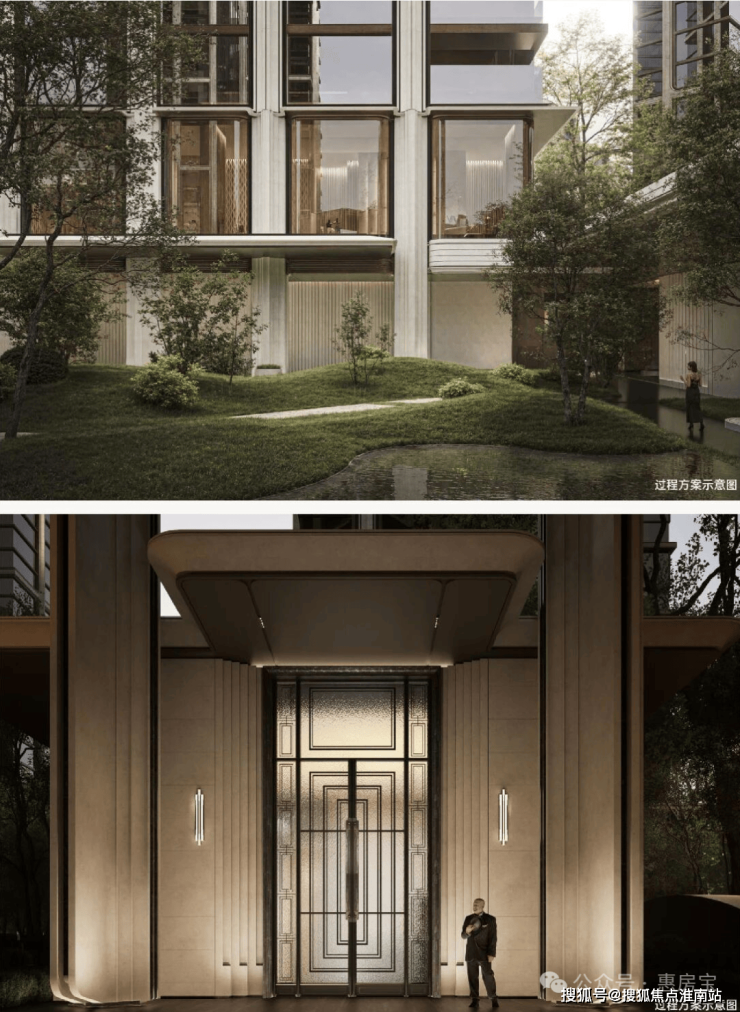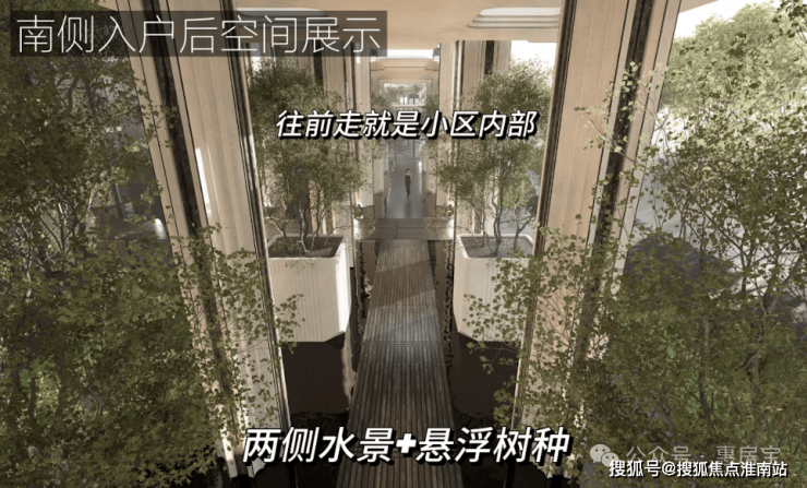 所有楼栋一层全架空,形成风雨连廊和下沉庭院;社区内中央水轴串联四大主题园区(亲子乐园、静谧花园等),甚至引入雾森系统营造“仙境感”。