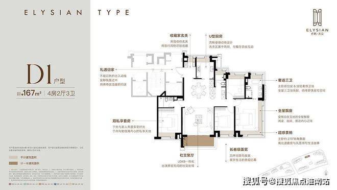 每个户型至少6个飘窗,边套更是约270°转角瞰景。