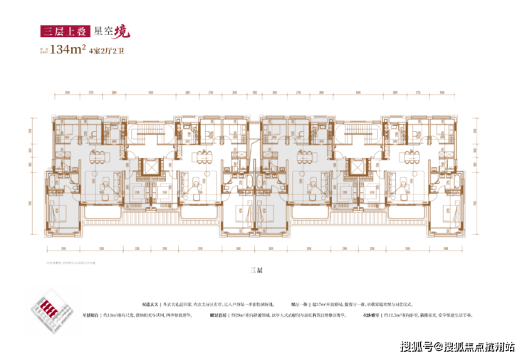 3、从户型设计来看,一楼户型附赠超大地下室及双层庭院;二楼户型附赠星空露台;三楼附赠露台及其他空间;户型实得率最大可以超过200%!平均也能达到约150%左右!