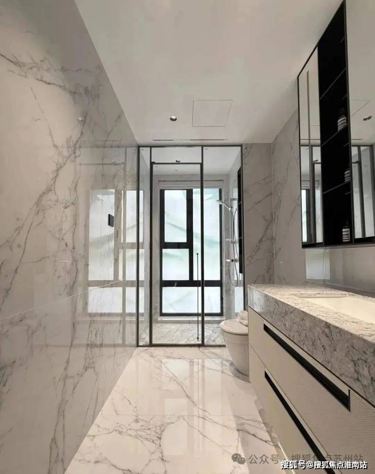3.八种不同材质的奢石运用,卫生间地面全铺石材