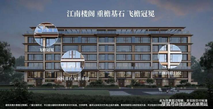 延续建发“王府中式”基因,采用风雅宋韵风格,立面以石材+铝板+铝板线条打造,细节考究,重现江南院居理想 。