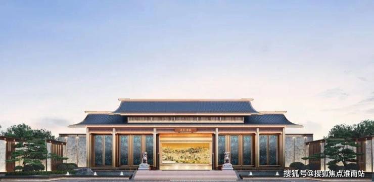 立面形制以借鉴宋皇室《仙山楼阁图》《瑞鹤图》中建筑要素为灵感,并以沧浪亭中明道堂为基础。采用重檐坡屋顶,五间一启形制,庄重不失克制。七阶入门,象征尊贵寓意圆满。门楣大师墨宝,门内非遗漆画姑苏繁华图,再现金阊的富贵之景