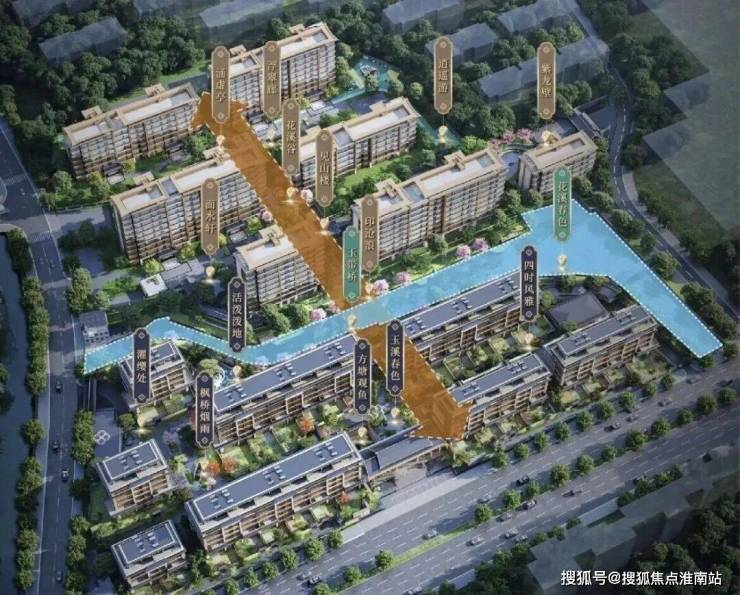 以姑苏枕河为图,打造天然双园:以滨河对叠加、洋房进行区隔