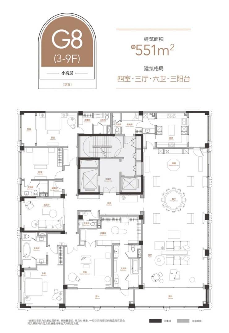 本次主推主力户型,涵盖三房 / 四房改善产品,亮点突出:高得房率 + 多赠送空间,零过道浪费类一梯一户 / 独立电梯厅,私密性与尊崇感兼备LDKB 一体化横厅设计,尺度感超越同级全系品牌精装,配置高端,居住体验一步到位