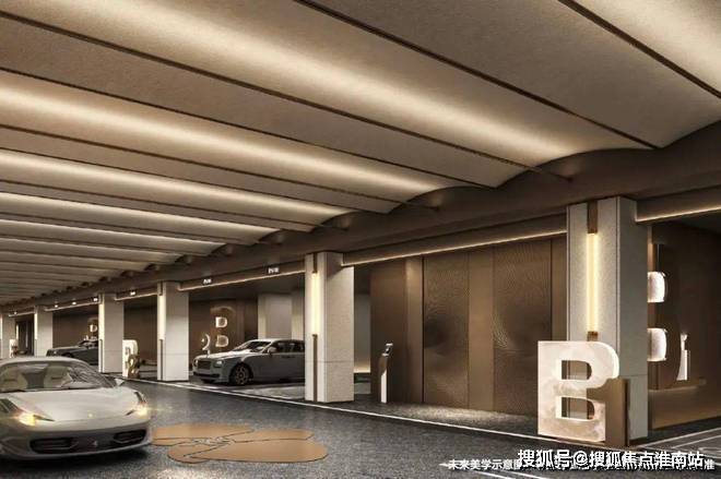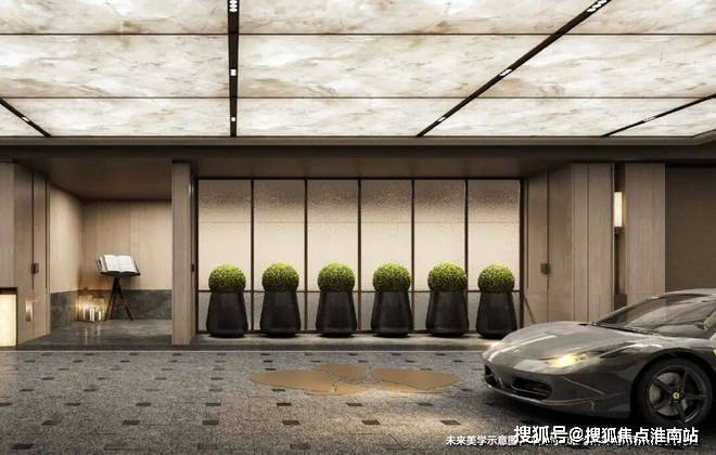 精装车库, 金茂这次也拿出了流光穹顶的天幕和定制化的归家门头,甚至地面都采用了石材来增加奢华感。