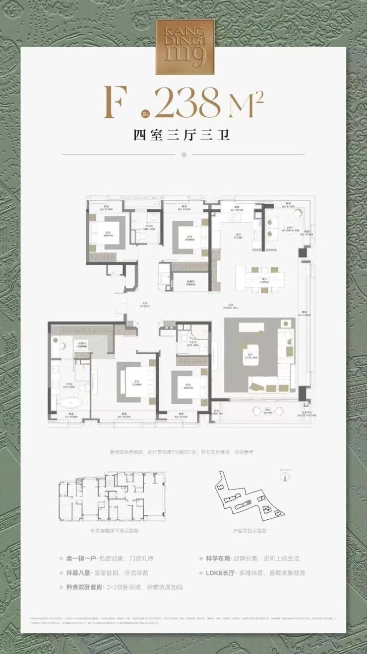 238㎡ 4 房 2 厅 3 卫:总价4167-4300 万,标杆户型,仅 3/7 楼可选