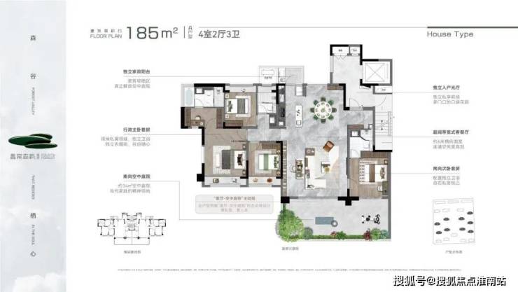产品规划:建面约150㎡、185㎡、220㎡,户均约30-50㎡空中庭院