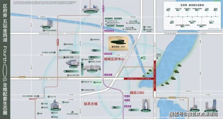 依托相城主城天然的地理优势,以环线快速路、隧道、地铁等立体交通主动脉为引擎,构建出相城区府中心、园区金鸡湖商务区、姑苏古城三大CBD交汇的“中心”坐标,并将全域高端资源纳入FourthOS.四代生态系统。