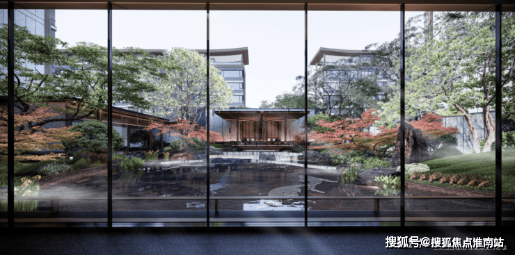 绕过清逸不失威仪的东方门庭,迈入中式传统围水庭院,充满美好寓意的“华纹”设计,绘就一个向心聚拢的礼序庭院。