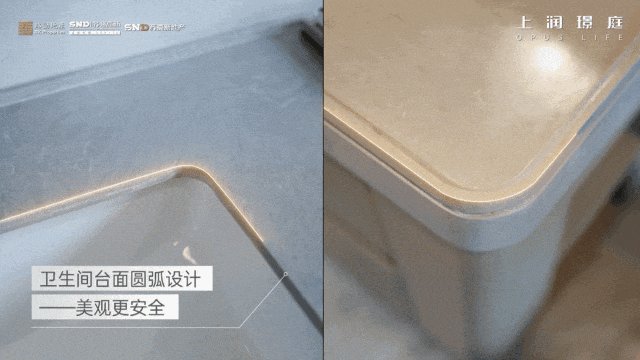 卫生间的设计兼顾美观与实用,台面采用圆弧设计,主卫配置抽拉式龙头,墙排智能马桶和电热毛巾架的加入,提升生活的舒适度和幸福感。