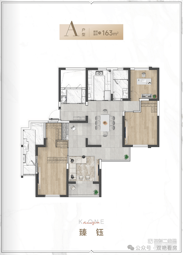 在售户型面积:建面约163㎡3房2厅2卫,分为艺术东方风格A户型与意式优雅风格B户型;另有建面约73㎡+90㎡的双钥匙双开门双户设计(未明确是否在售)