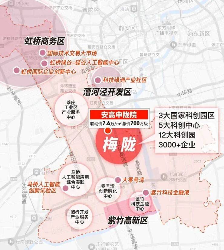 安高梅陇项目东至梅富路,南至梅南路,西至集心路,北至梅美商务园区,位于春申景城湖畔林语东侧,房地联动价76000元/㎡!项目占地面积约5.64万方,计容面积约11.29万方,容积率2.0,绿地率35%!