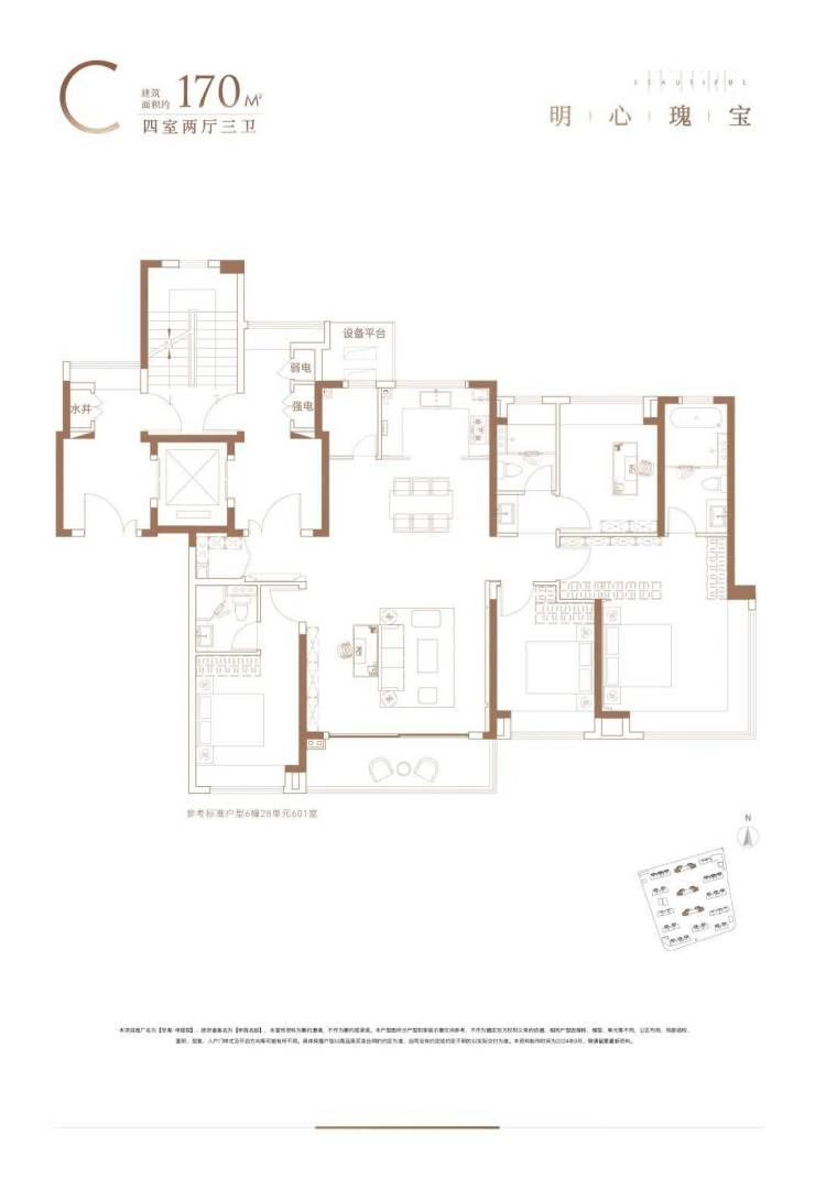 四居室:约170㎡,大面宽横厅设计,满足高端改善需求